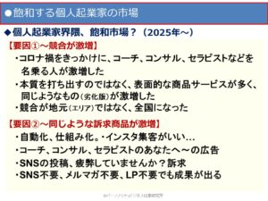 今年、2025年に入ってから、「個人起業家」をひとつの市場として捉えるならば、ずいぶん「飽和(成熟)市場」になったな、と感じています。