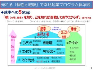 なので、『幸せ起業プログラム』では、これらの考え方をとても大切にしており、「成幸」のために最も重要なのは、「市場理解」と「顧客理解」、そして、「自己理解」としています。