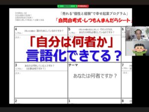 先日も、「しつもんまんだらシート™」を使って、当日のテーマである「あなたは何者ですか?」について、パーソナライズミーティングを行いました。